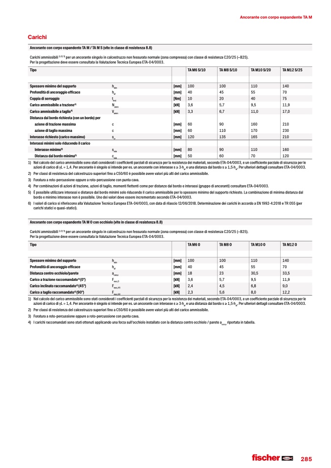 6) IvaloridicaricosiriferisconoallaValutazioneTecnicaEuropeaETA-04/0003,condatadirilascio12/06/2018.DeterminazionedeicarichiinaccordoaEN1992-4:2018eTR055(per