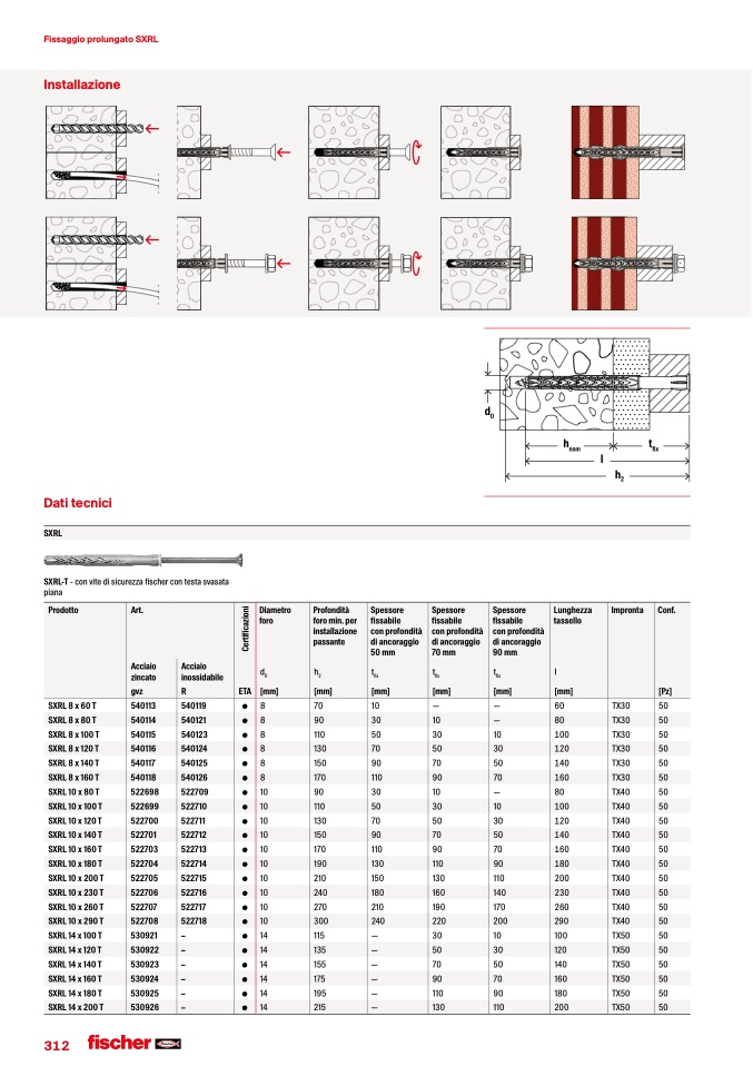 SXRL-T - con vite di sicurezza fischer con testa svasata
