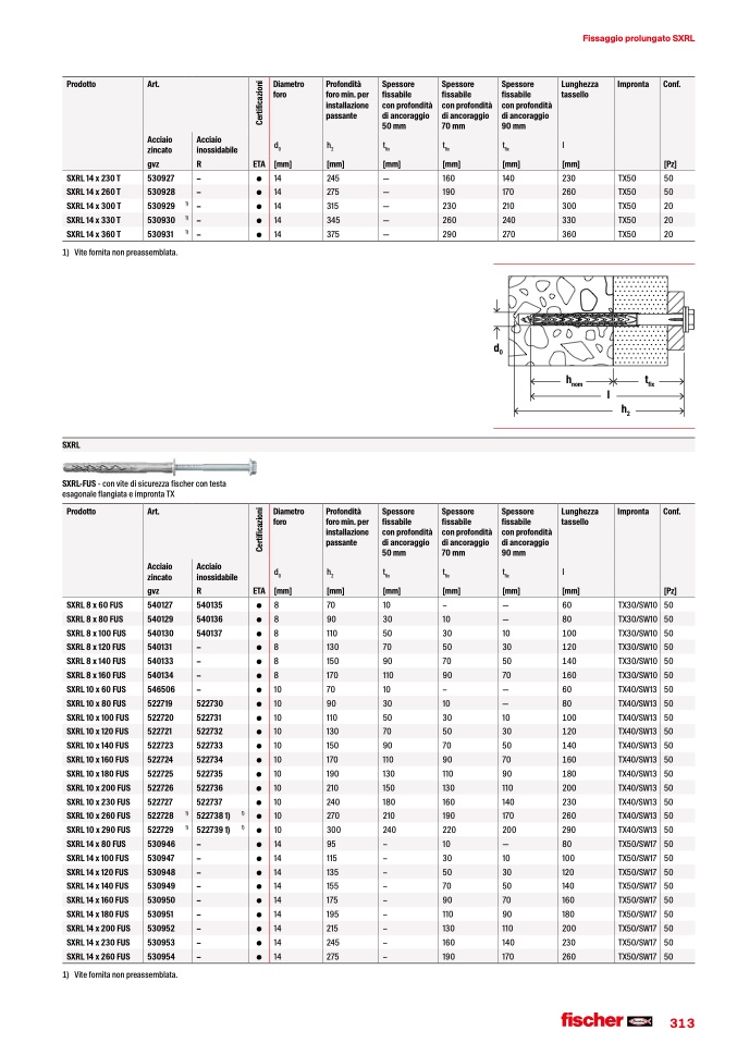 SXRL-FUS - con vite di sicurezza fischer con testa