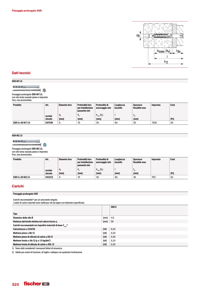 I valori di carico riportati sono validi per viti da legno con diametro specificato.