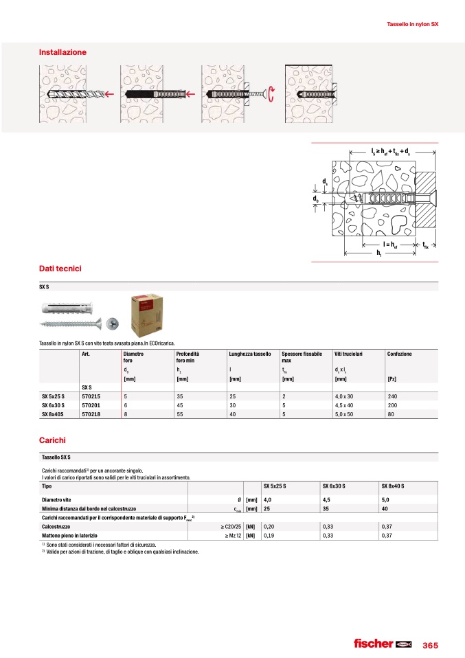 Tassello in nylon SX S con vite testa svasata piana.In ECOricarica.