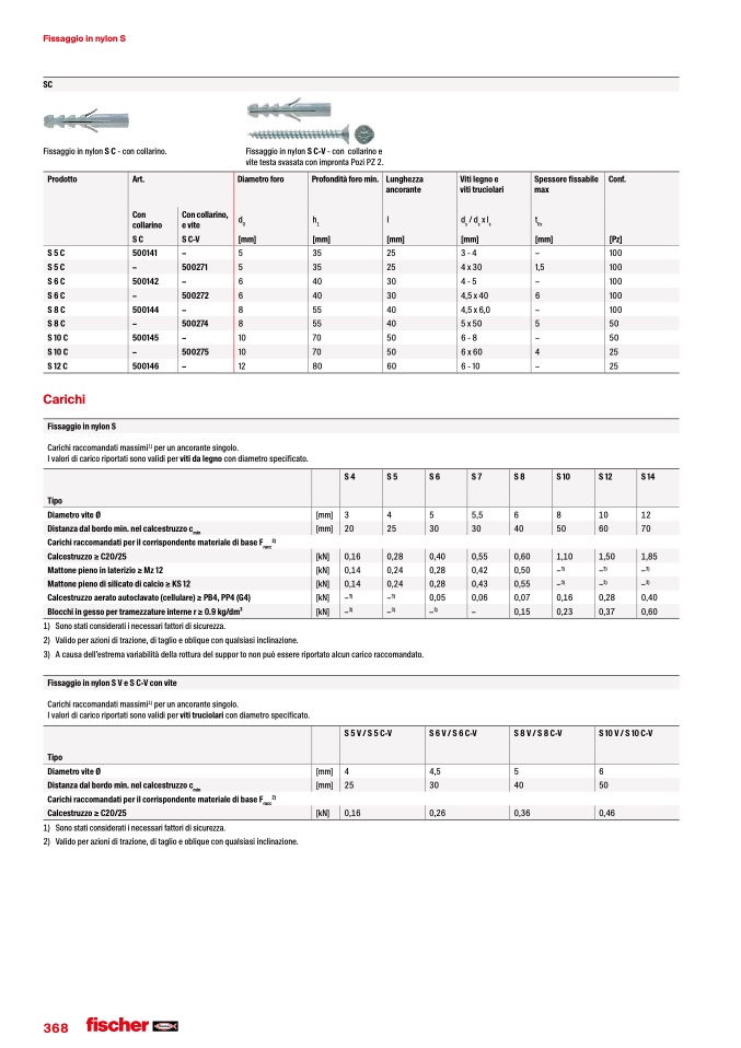 I valori di carico riportati sono validi per viti truciolari con diametro specificato.