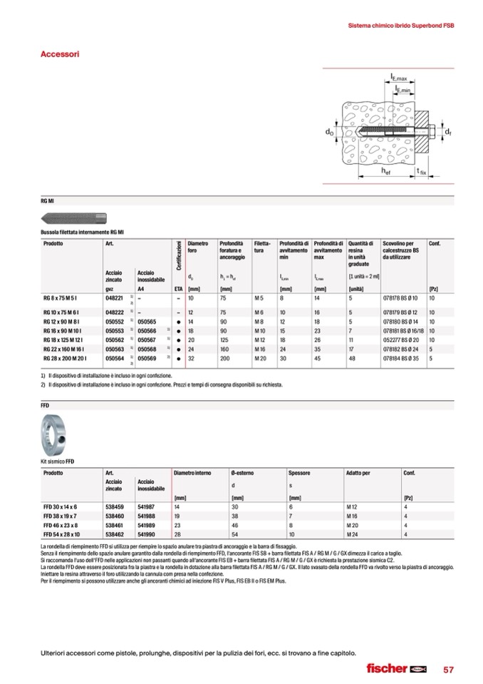 Si raccomanda l‘uso dell‘FFD nelle applicazioni non passanti quando all‘ancorante FIS EB + barra filettata FIS A / RG M / G / GX è richiesta la prestazione sismica C2.