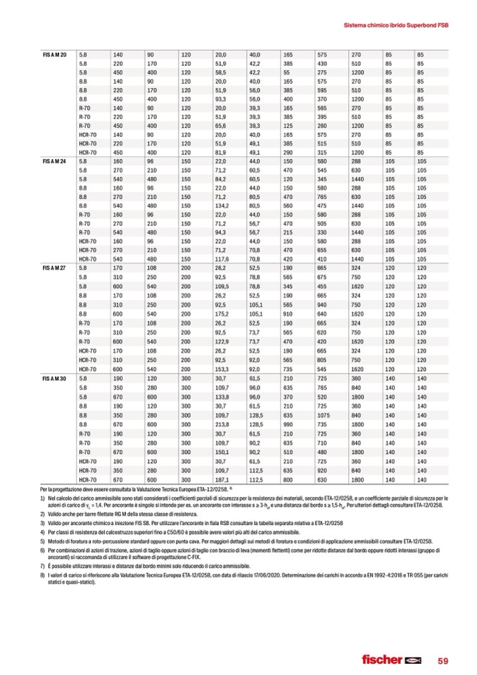 8) IvaloridicaricosiriferisconoallaValutazioneTecnicaEuropeaETA-12/0258,condatadirilascio17/06/2020.DeterminazionedeicarichiinaccordoaEN1992-4:2018eTR055(percarichi