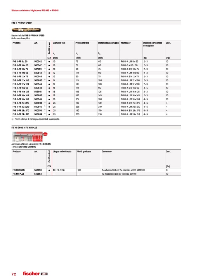 Sistema chimico Highbond FIS HB + FHB II