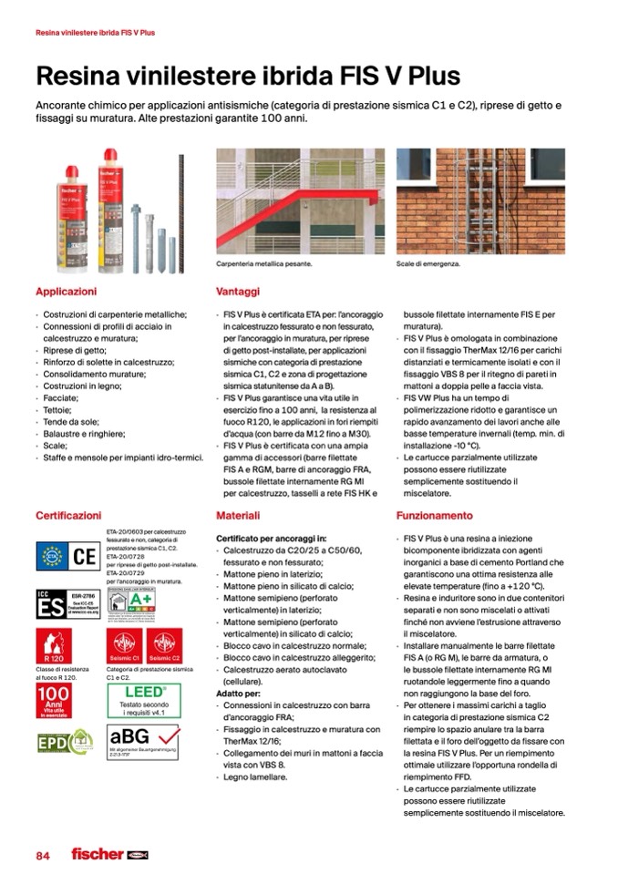 Ancorante chimico per applicazioni antisismiche (categoria di prestazione sismica C1 e C2), riprese di getto e