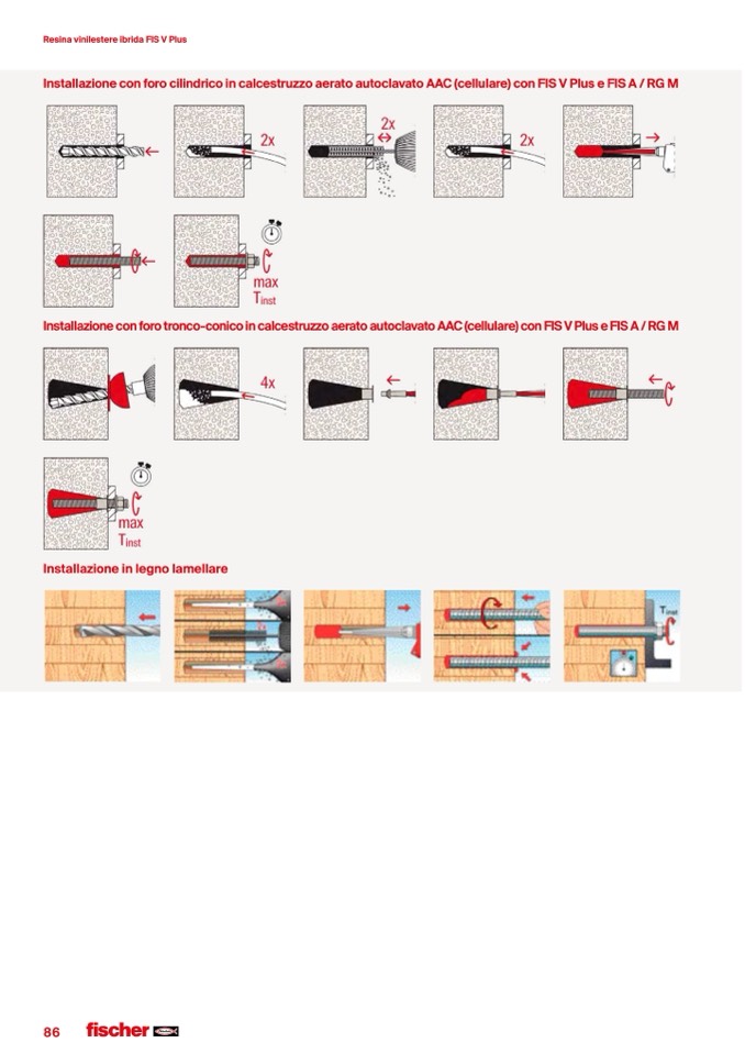Installazione con foro cilindrico in calcestruzzo aerato autoclavato AAC (cellulare) con FIS V Plus e FIS A / RG M