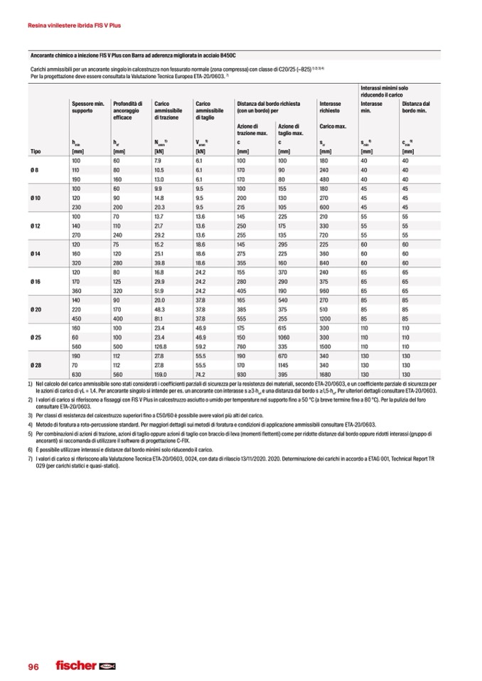 2) IvaloridicaricosiriferisconoafissaggiconFISVPlusincalcestruzzoasciuttooumidopertemperaturenelsupportofinoa50°C(abreveterminefinoa80°C).Perlapuliziadelforo