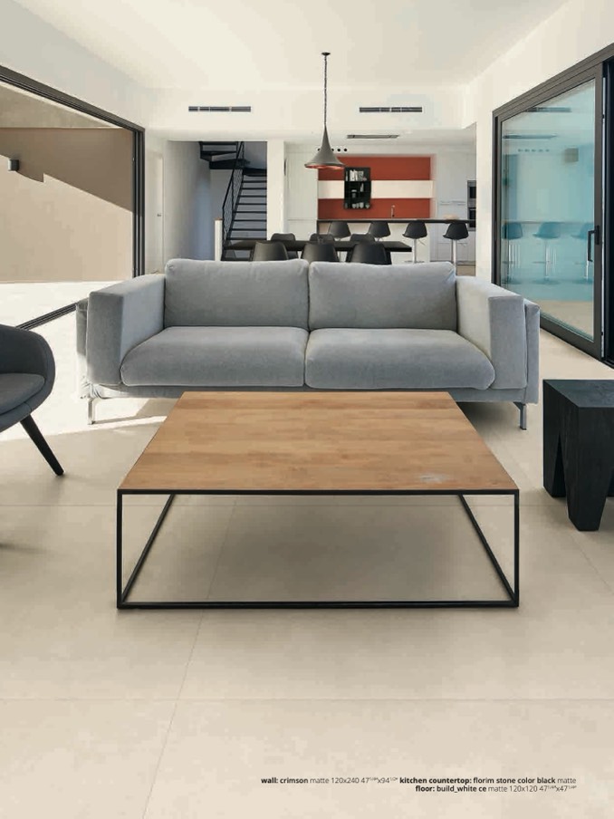 wall: crimson matte 120x240 471/4”x941/2” kitchen countertop: florim stone color black matte