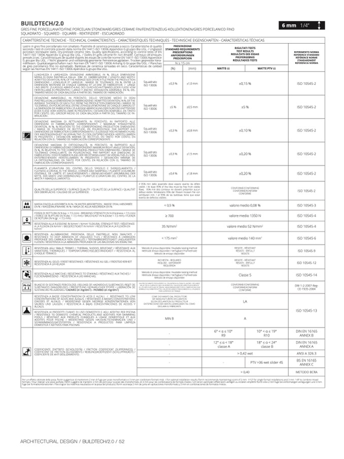 secondo i test di controllo previsti dalla norma EN 14411-ISO 13006 Appendice G gruppo BIa UGL. / Unglaze