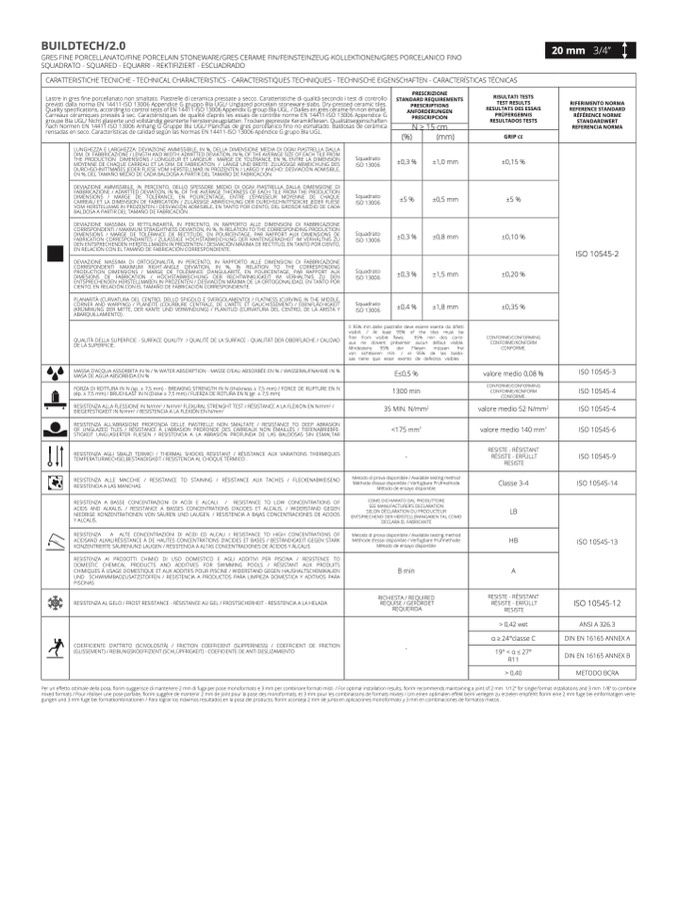 CARATTERISTICHE TECNICHE - TECHNICAL CHARACTERISTICS - CARACTERISTIQUES TECHNIQUES - TECHNISCHE EIGENSCHAFTEN - CARACTERÍSTICAS TÉCNICAS