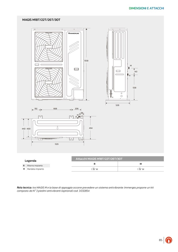 Nota tecnica: tra MAGIS M e la base di appoggio occorre prevedere un sistema antivibrante. Immergas propone un kit