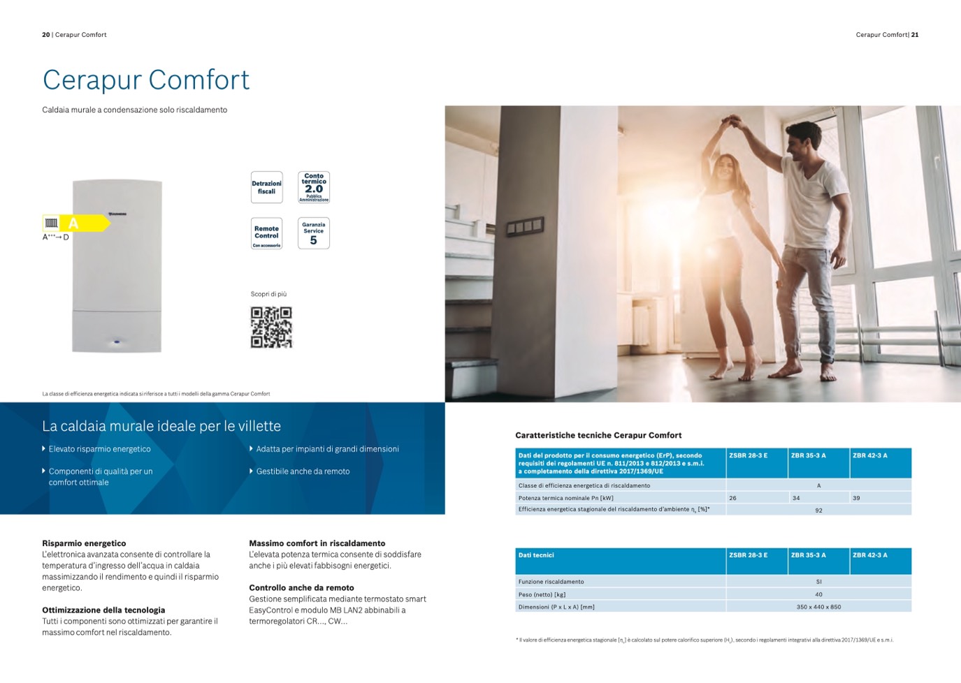 La classe di efficienza energetica indicata si riferisce a tutti i modelli della gamma Cerapur Comfort