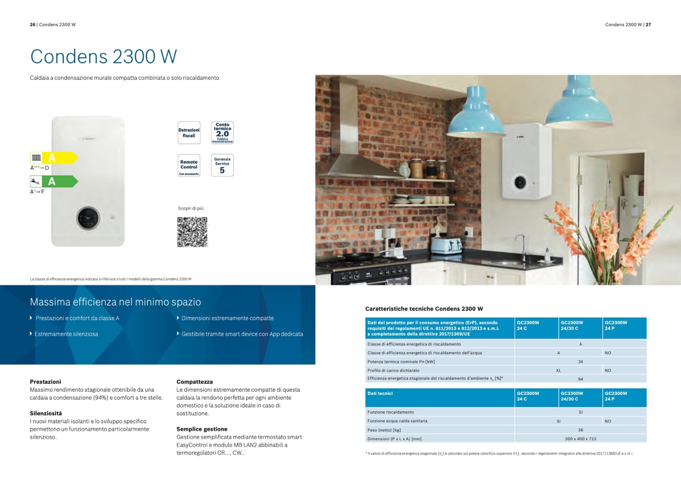 La classe di efficienza energetica indicata si riferisce a tutti i modelli della gamma Condens 2300 W