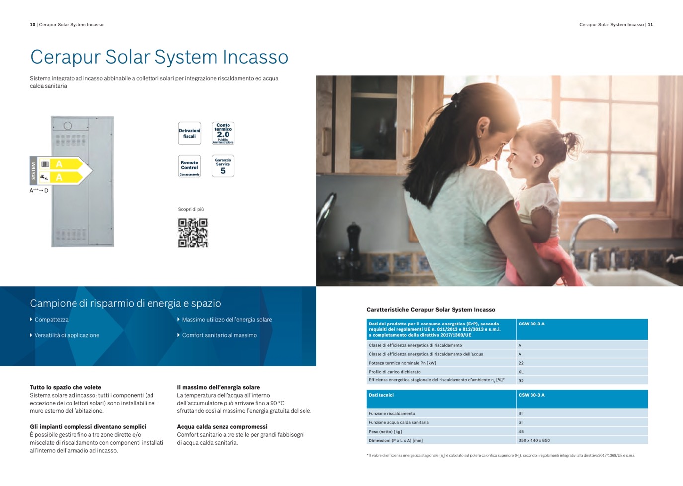 Sistema integrato ad incasso abbinabile a collettori solari per integrazione riscaldamento ed acqua