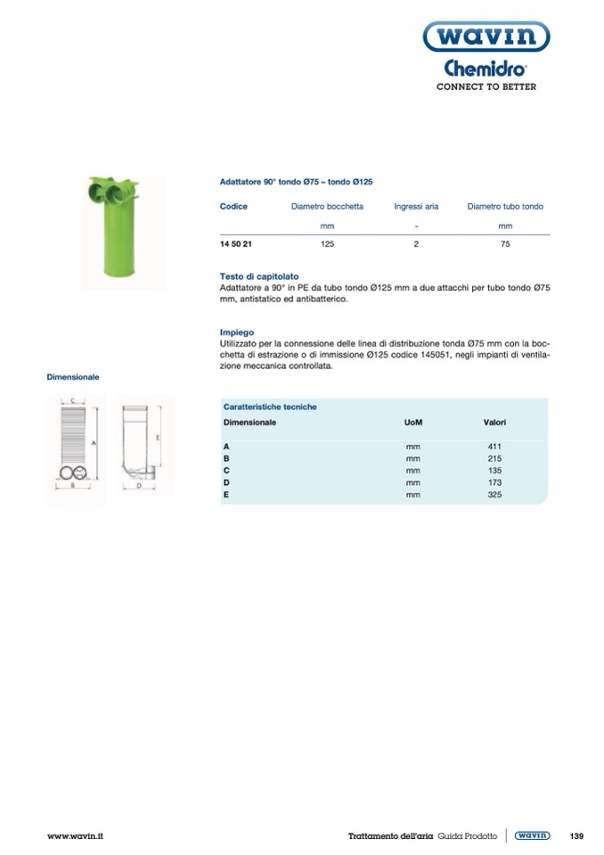 Utilizzato per la connessione delle linea di distribuzione tonda Ø75 mm con la boc-