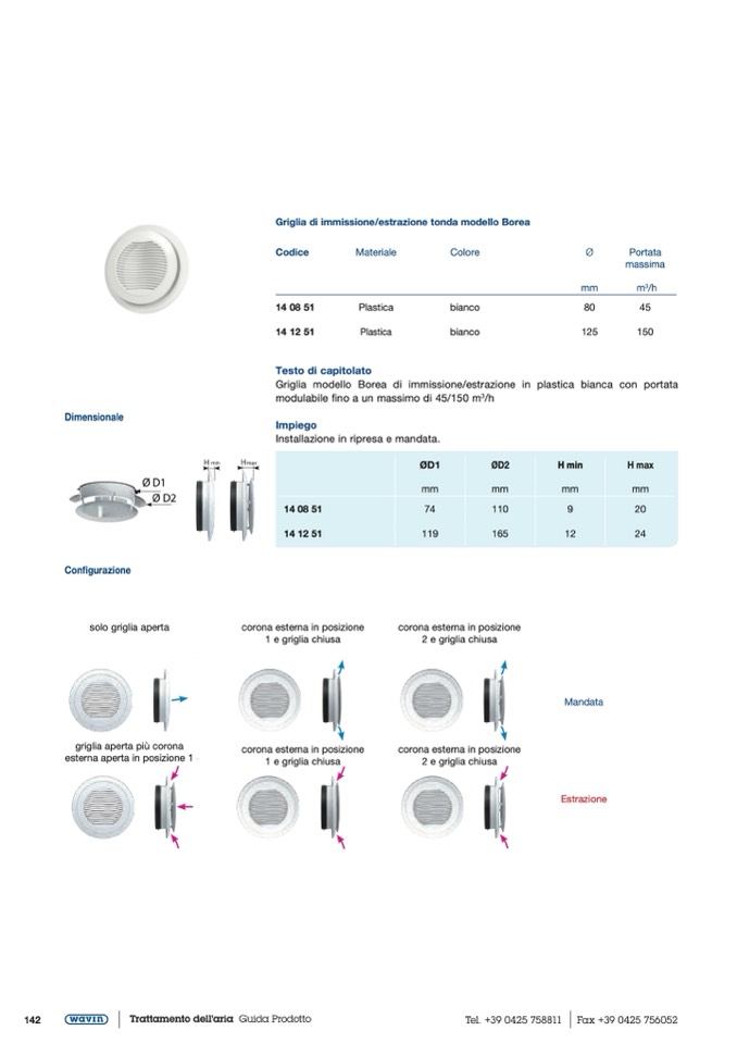 Griglia di immissione/estrazione tonda modello Borea