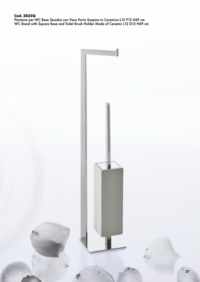 Piantana per WC Base Quadra con Vaso Porta Scopino in Ceramica L12 P12 H69 cm