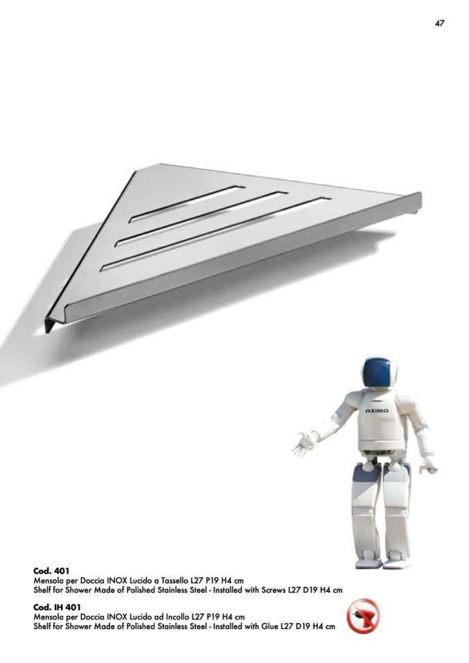 Mensola per Doccia INOX Lucido ad Incollo L27 P19 H4 cm