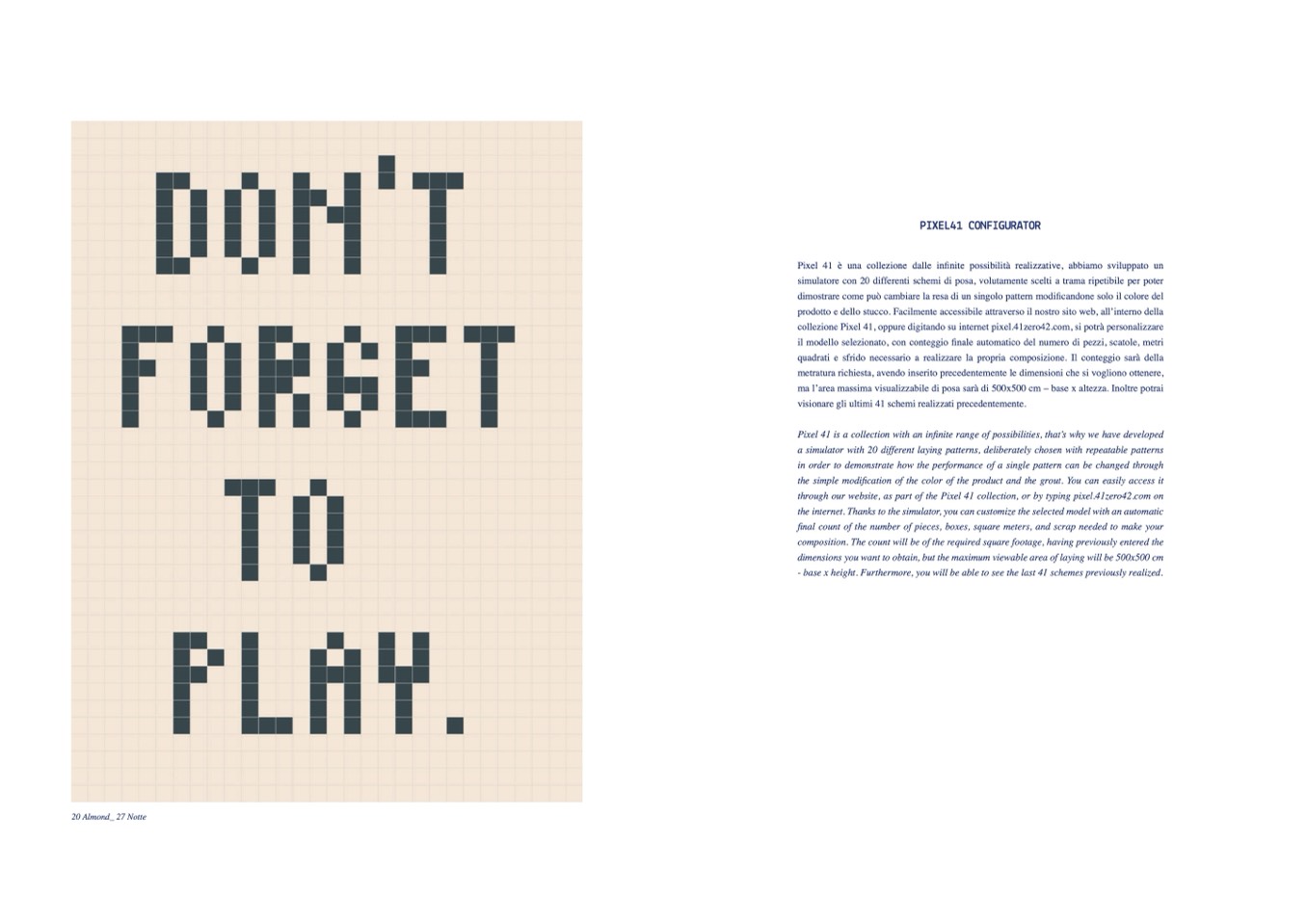 collezione Pixel 41, oppure digitando su internet pixel.41zero42.com, si potrà personalizzare