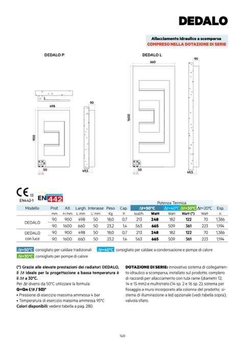 (*) Grazie alle elevate prestazioni dei radiatori DEDALO,