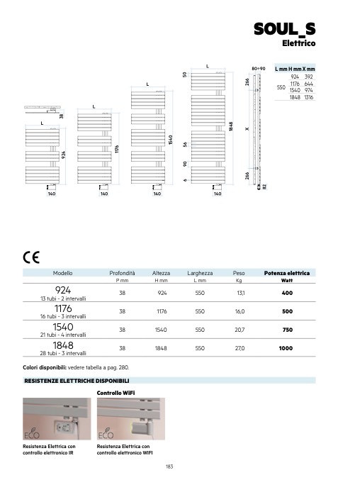 Colori disponibili: vedere tabella a pag. 280.