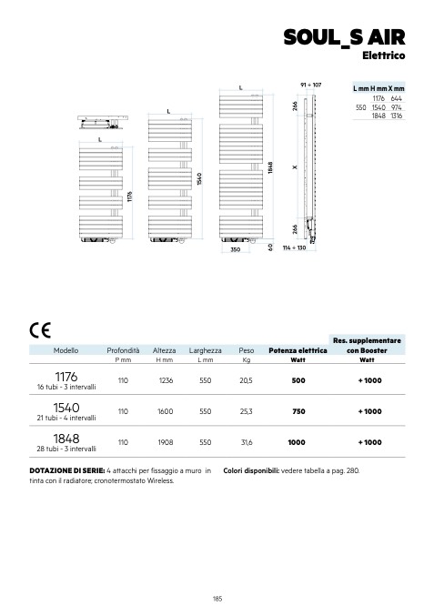 DOTAZIONE DI SERIE: 4 attacchi per fissaggio a muro in
