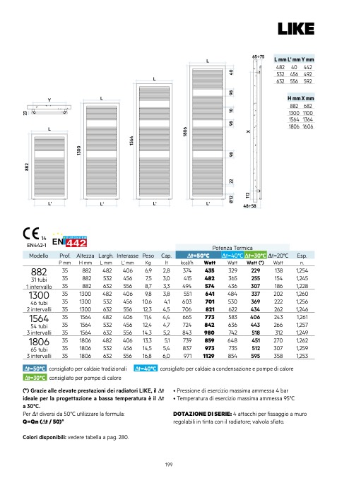 (*) Grazie alle elevate prestazioni dei radiatori LIKE, il ∆t
