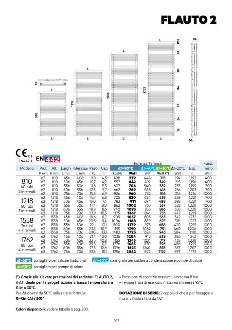 (*) Grazie alle elevate prestazioni dei radiatori FLAUTO 2,