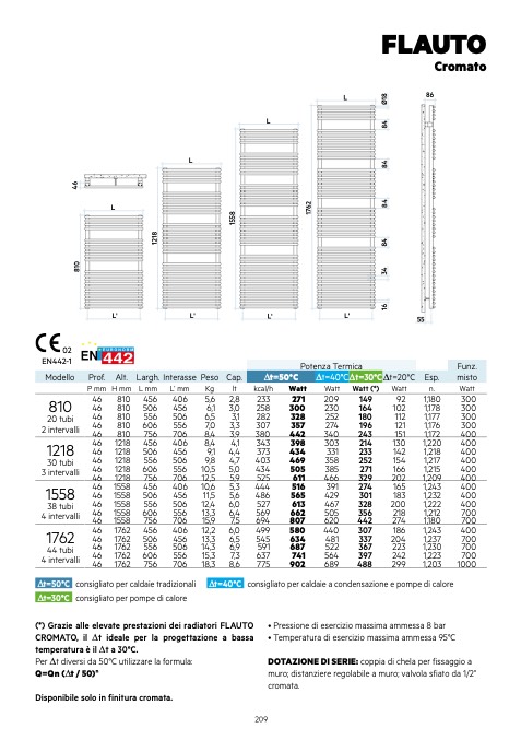 (*) Grazie alle elevate prestazioni dei radiatori FLAUTO