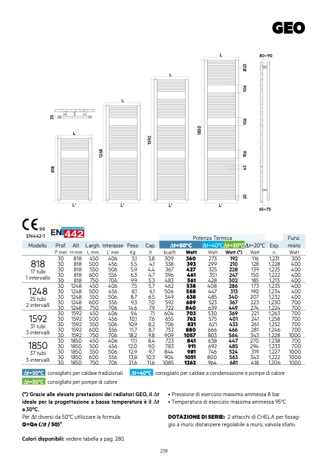(*) Grazie alle elevate prestazioni dei radiatori GEO, il ∆t