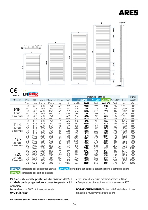 (*) Grazie alle elevate prestazioni dei radiatori ARES, il