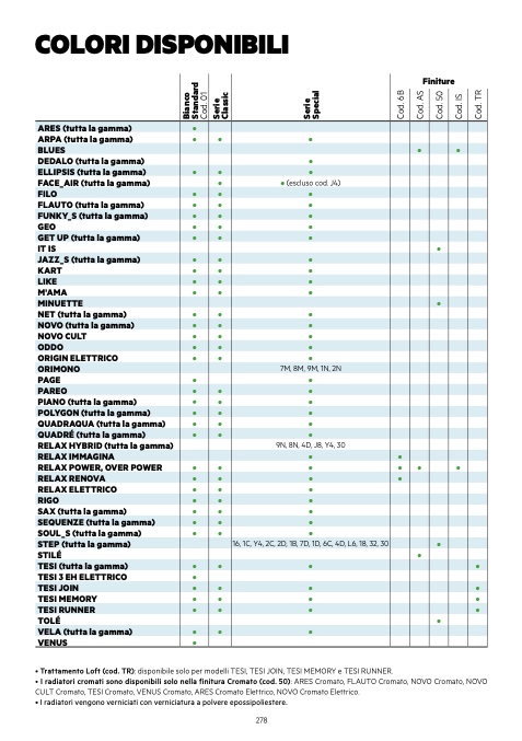 • Trattamento Loft (cod. TR): disponibile solo per modelli TESI, TESI JOIN, TESI MEMORY e TESI RUNNER.