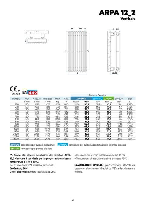 (*) Grazie alle elevate prestazioni dei radiatori ARPA