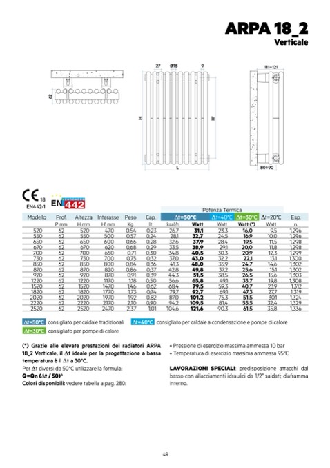 (*) Grazie alle elevate prestazioni dei radiatori ARPA
