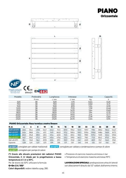 PIANO Orizzontale: Resa termica a metro lineare