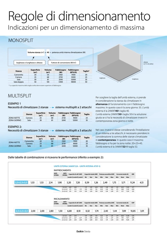 Volume stanza (m3) x 40 = potenza unità interna climatizzatore (W