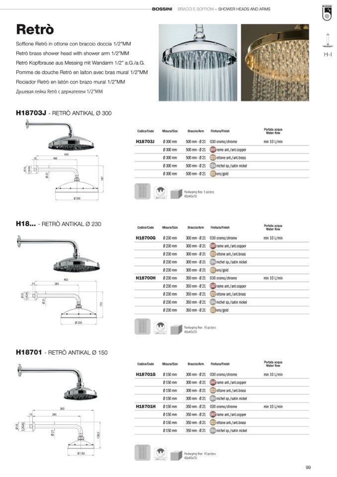 BRACCI E SOFFIONI – SHOWER HEADS AND ARMS