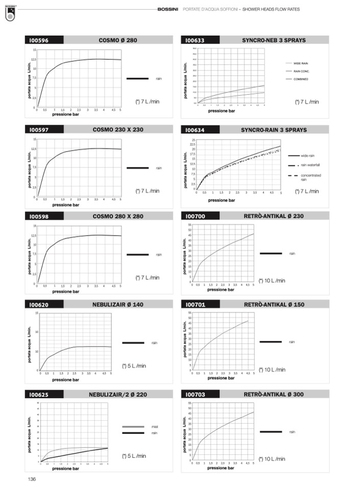 BOSSINI PORTATE D’ACQUA SOFFIONI – SHOWER HEADS FLOW RATES