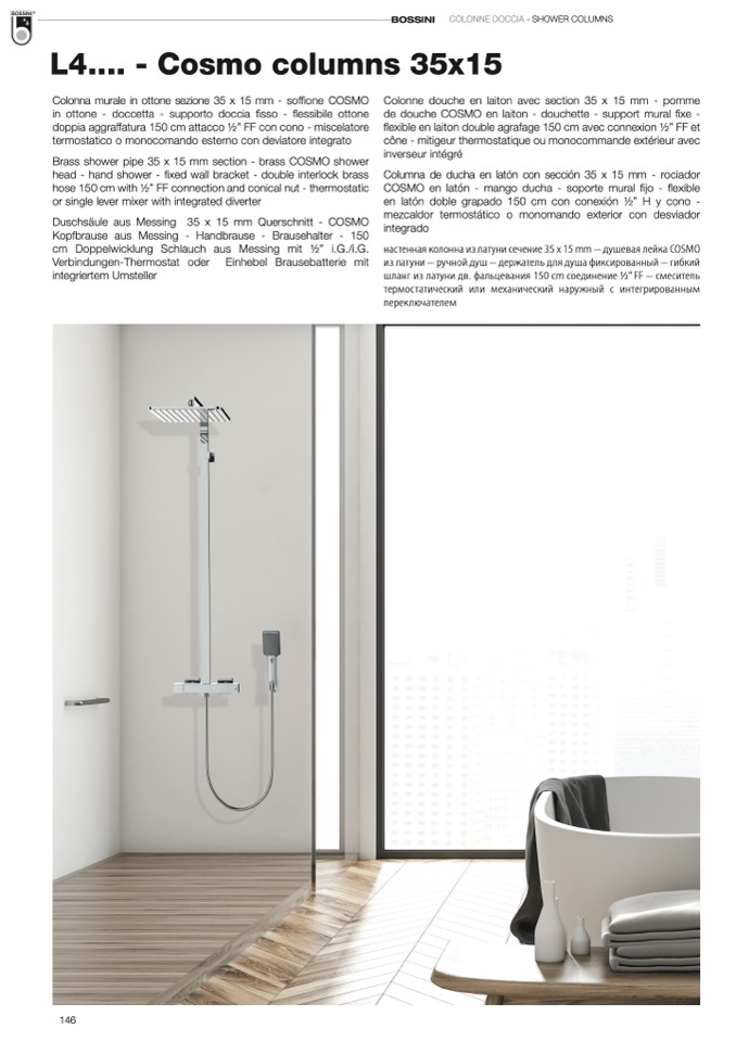 Colonna murale in ottone sezione 35 x 15 mm - soffione COSMO