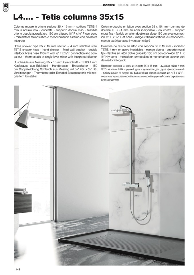 Colonna murale in ottone sezione 35 x 15 mm - soffione TETIS 4