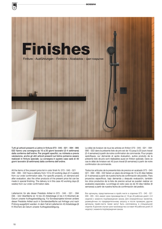 Tutti gli articoli presenti a Listino in finitura 073 - 045 - 021 - 094 - 095