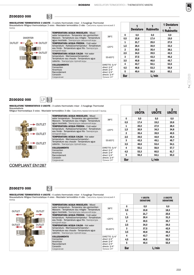 MISCELATORE TERMOSTATICO 3 USCITE - 3 outlets thermostatic mixer - 3 Ausgänge Thermostat