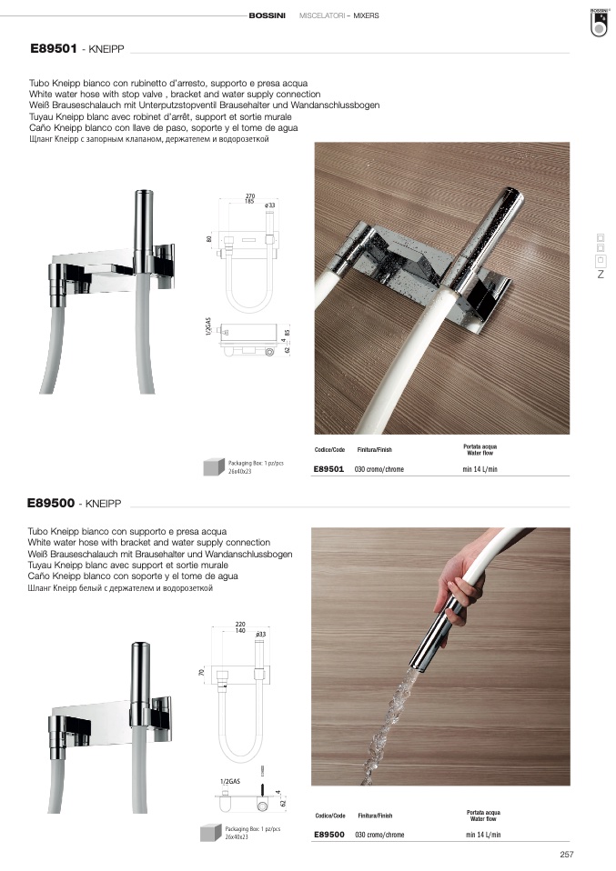 Tubo Kneipp bianco con rubinetto d’arresto, supporto e presa acqua