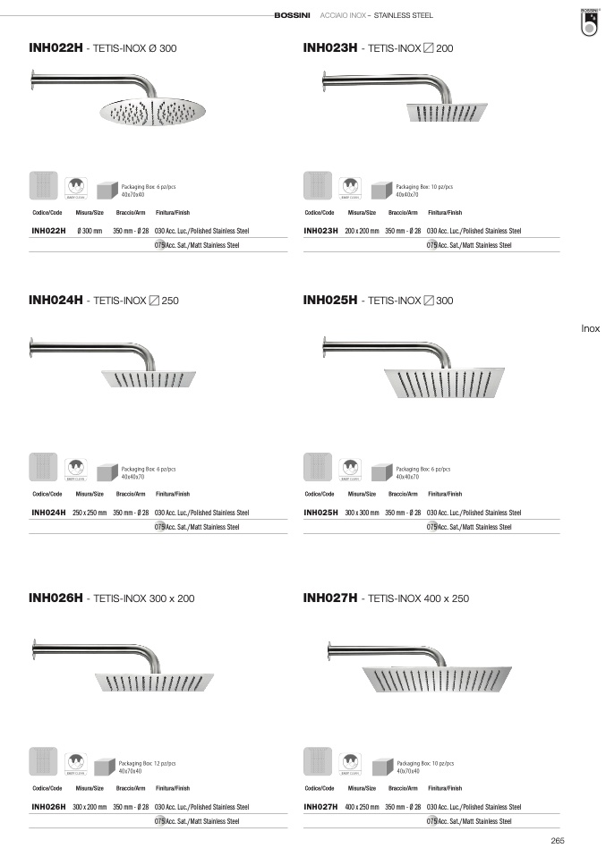 BOSSINI ACCIAIO INOX – STAINLESS STEEL