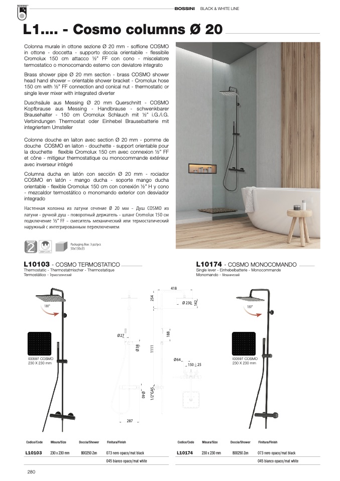 Colonna murale in ottone sezione Ø 20 mm - soffione COSMO