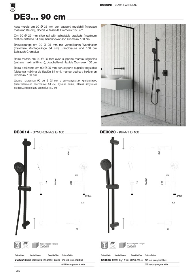 fixation distance 84 cm), handshower and Cromolux 150 cm