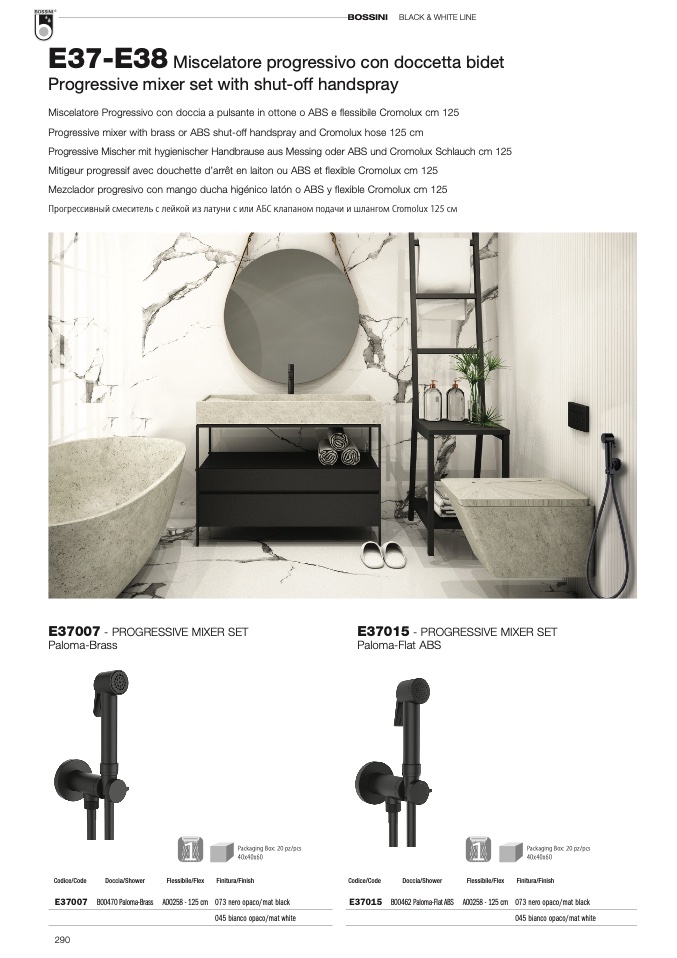 Mitigeur progressif avec douchette d’arrêt en laiton ou ABS et flexible Cromolux cm 125
