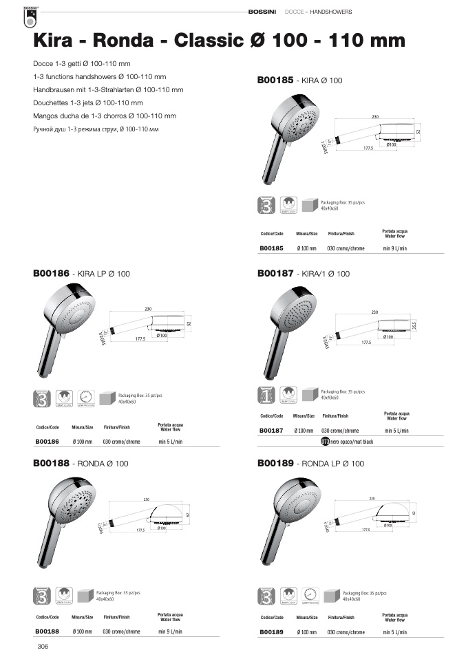 1-3 functions handshowers Ø 100-110 mm