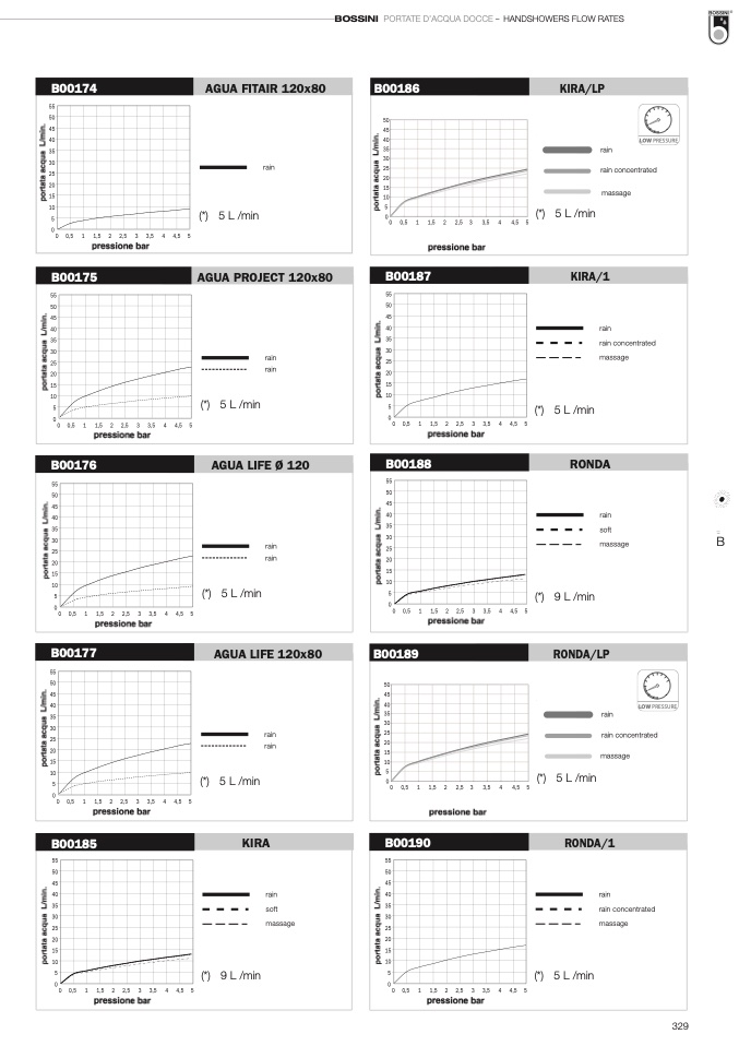 BOSSINI PORTATE D’ACQUA DOCCE – HANDSHOWERS FLOW RATES